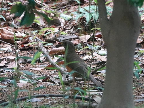 | オオバン[5月3日] 1羽だけ残っていました。 | アカハラ[5月2日] のんびり屋でしょうか。 | |