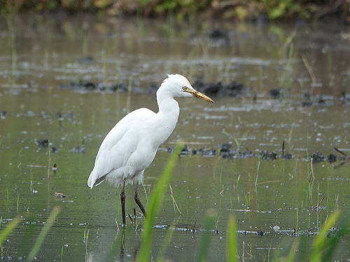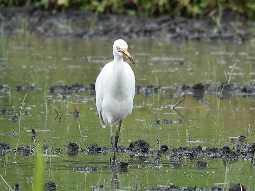 | アマサギ[5月21日] 未だ夏羽になっていないアマサギが1羽いました。 | アマサギ[5月21日] オケラのような虫を獲っていました。 | |