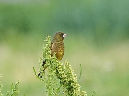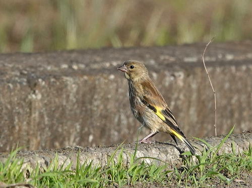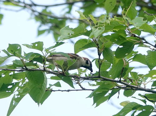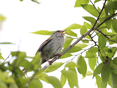 | オナガ[5月8日] 桑の実を食べに来たようです。 | カワラヒワ[5月7日] 幼鳥のようです。 | |