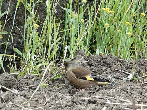 | カワラヒワ[5月8日] せっせと採餌していました。 | コチドリ[5月8日] 今日は3羽居ました。 | |