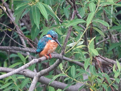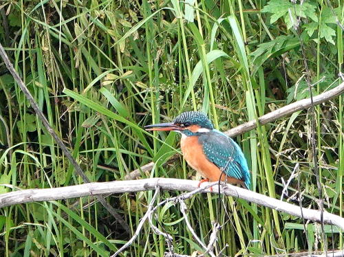 | カワセミ♂[5月16日] 鈴のような声が長い間聞こえていました。 | カワセミ♀[5月16日] 辺りを探すと近くに♀が居ました。鈴のような声は求愛の声だったようです。 | |