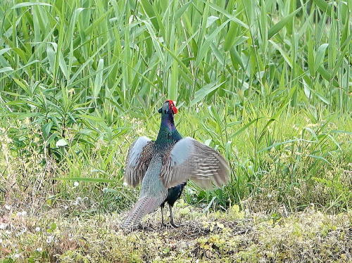 | ユリノキ[5月8日] そろそろかなと思って見上げると沢山咲いていました。 | キジ[5月6日] ♂が母衣打ちをしているところへ♀がやって来て誘いをかけて来ました。 | |