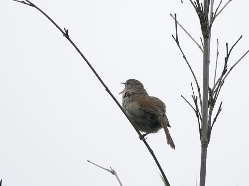 | チュウサギ[5月21日] 2羽居ました、飾り羽が綺麗です。 | ウグイス[5月21日] 大音量で囀っていました。 | |