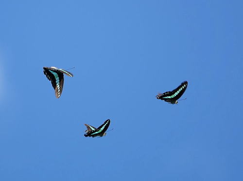 | ナンバンギセル[8月20日] 満開になりました。次々にキセルが出てきています。 | アオスジアゲハ[8月18日] 3頭が絡み合いながら長い間飛んでいました。 | |