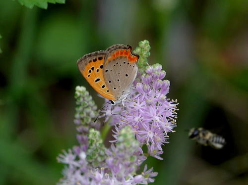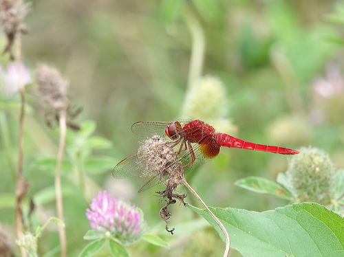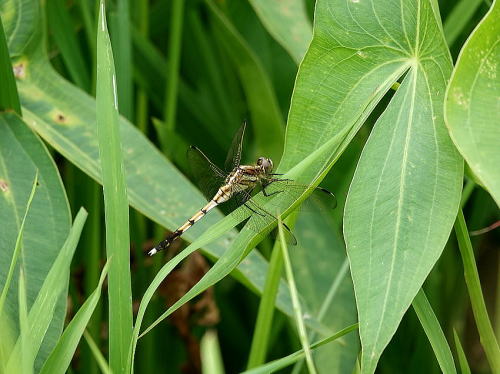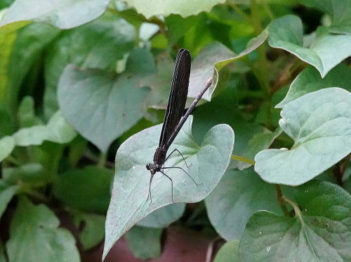 | ベニシジミ[8月26日] ツルボが満開です。いろんな虫が吸蜜にやって来ます。 | ハグロトンボ[8月25日] 先日はバス道路の分離帯を飛んでいました。 | |