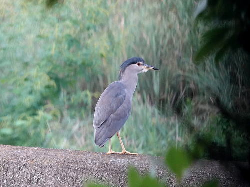 | ヤマガラ[8月27日] 何か実を取ってきて突いて食べていました。 | ゴイサギ[8月26日] 夕方になって出て来ました。未だ飾り羽が伸びてない若鳥です。 | |