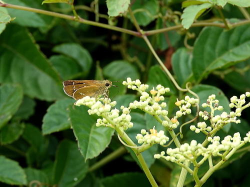 | イチモンジセセリ[8月16日] ヤブガラシの花に飛んで来ました。 | カワセミ[8月15日] 何処かに持っていくのかと思いましたが、咥えなおして食べてしまいました。 | |