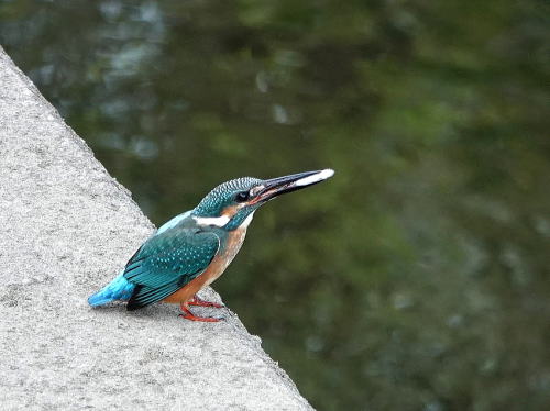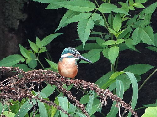 | カワセミ[8月13日] 食べないで、給餌用に咥えて飛んで行ったので、何処かに幼鳥がいたのかも。 | カワセミ[8月13日] ♂の若鳥がいました。 | |