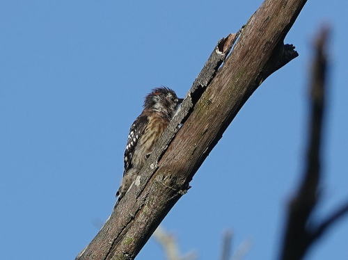 | モンキチョウ[8月18日] 何頭もが蜜を吸っていました。 | コゲラ[8月18日] 久々に♂を見かけました。 | |