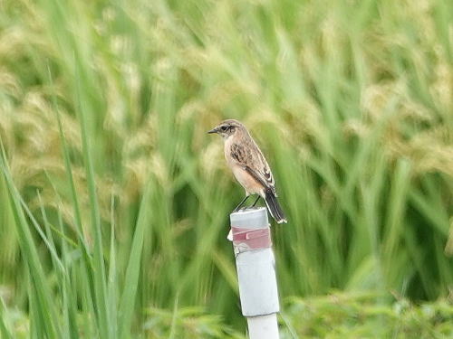 | ノビタキ[8月29日] 学校田や隣の休耕田に1羽だけいました。 | ノビタキ[8月29日] 早い到着のように思います。 | |