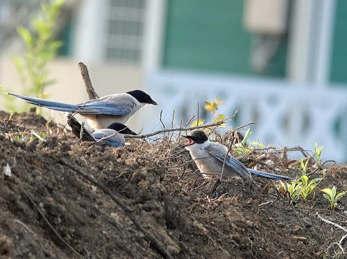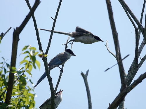 | オナガ[8月1日] 一番下が幼鳥です。餌をねだっています。 | オナガ[8月1日] 幼鳥です。 |
