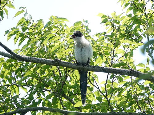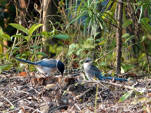 | オナガ[8月9日] 大きな鳴き声が聞こえて来ました。幼鳥が餌をねだっています。 | オナガ[8月9日] 親がせっせと餌を探しています。 | |