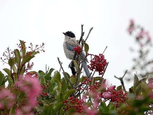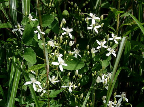 | オナガ[8月25日] サンゴジュの実は食べ頃ですがあまり集まって来ません。 | センニンソウ[8月23日] きれいに咲き始めました。 | |