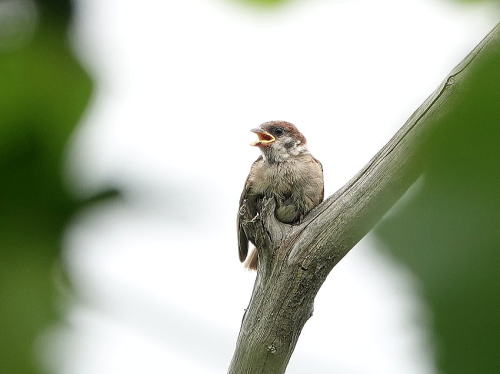 | コチドリ[8月7日] もう何日もいます。 | スズメ[8月7日] 親が餌を持って来たようですが貰えませんでした。 | |
