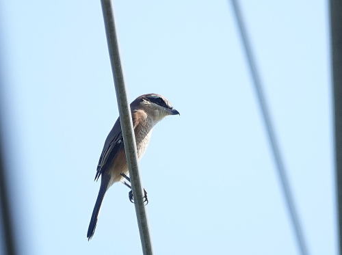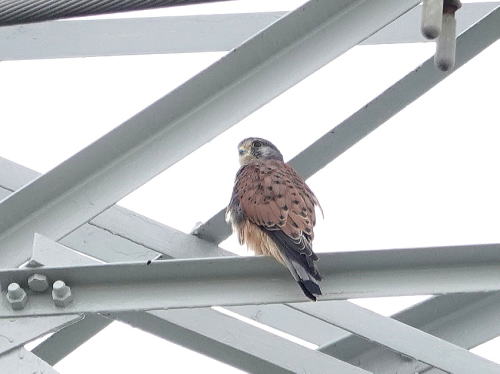 | コサメビタキ[9月29日] 撮った時は暗くて分からず、後で写真を見て分かりました。 | チョウゲンボウ[9月29日] 田んぼで何かを獲り、鉄塔で食べていました。 | |
