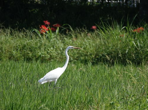 | モズ[9月25日] あちこちから高鳴きが聞こえてきます。 | ダイサギ[9月25日] 1羽だけ、長く居ます。 | |