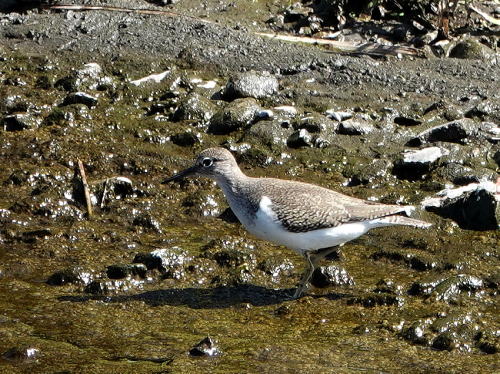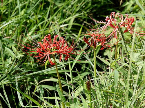 | ヒガンバナ[9月16日] 田んぼの畦道に咲いていました。 | イソシギ[9月16日] 採餌しながら歩いて行きました。 | |