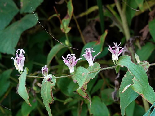 | ホトトギス[9月30日] 葉はぼろぼろですが花は綺麗に咲いています。 | ||