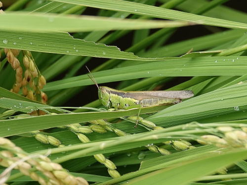 | アゲハ[9月1日] たっぷり蜜があるのでしょう、長い間吸っていました。 | イナゴ[9月1日] 農道を歩いているとぴょんぴょんと飛び込みます。 |