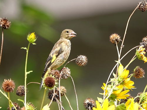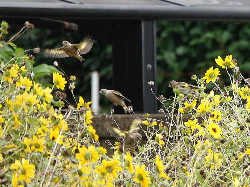 | カワセミ[9月16日] 若♂でしょうか。 | カワラヒワ[9月16日] 十羽くらいの群れでいました。 | |