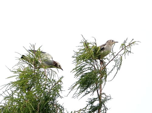 | カワラヒワ[9月21日] 種を目当てにやって来たようです。 | コムクドリ[9月21日] 数羽の群れで飛んで来ました。 | |