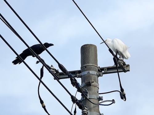 | ハシブトガラス、コサギ[9月17日] コサギが居る所にカラスが来て、30秒間くらい睨みあっていました。 | イソヒヨドリ[9月17日] この頃見かけなくなりました。 | |