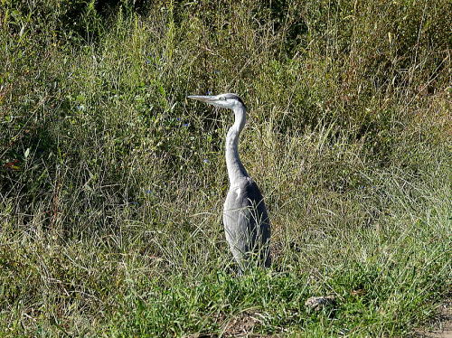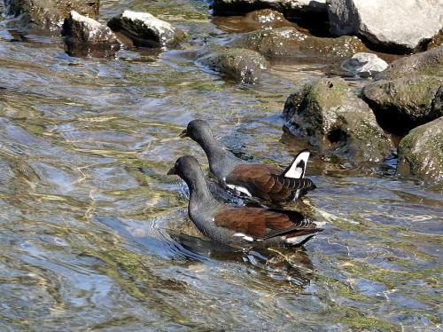 | アオサギ[10月2日] 2、3mまで近づいても歩いて逃げるだけ、行きも帰りも。 | バン[10月2日] 河原がツルツルになったので来ないかなと思っていました。ずっといて欲しいです。 | |