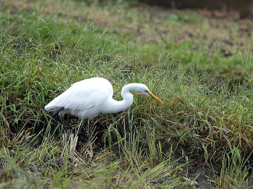 | キビタキ[10月11日] 集まって来ましたが一時でした。 | ダイサギ[10月10日] そろりそろりと歩いて獲物を探しています。 | |