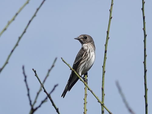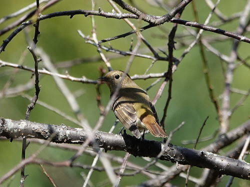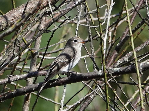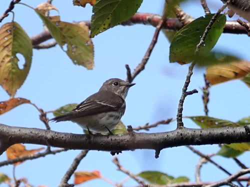 | ツマグロヒョウモン♀[10月1日] 離れても直ぐに戻り、何時までも吸蜜していました。 | エゾビタキ[10月1日] 1羽だけ、さっと飛んで来て直ぐに見えなくなりました。 | |