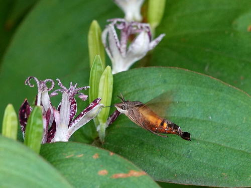 | ホシホウジャク[10月15日] 次々に花を変えて蜜を吸っていきます。 | トリカブト[10月15日] 今年も綺麗に咲き始めました。 | |