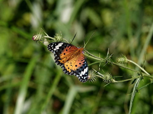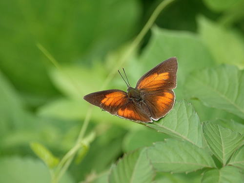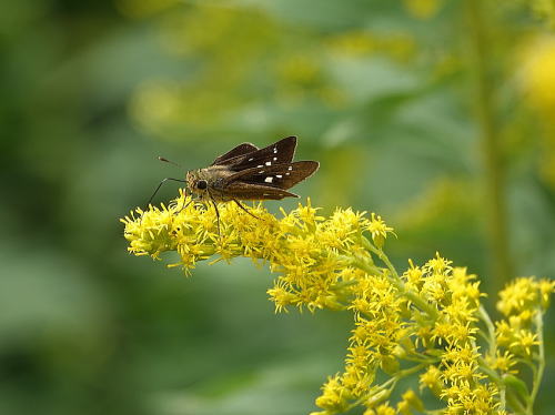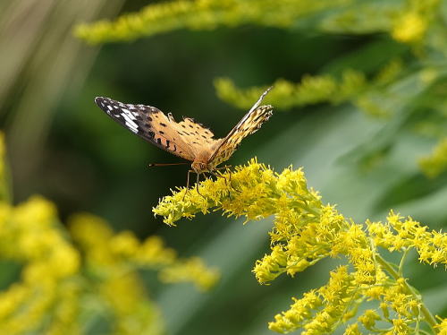 | ツマグロヒョウモン[10月9日] 満開のセイタカアワダチソウにやって来ました。 | イチモンジセセリ[10月9日] 沢山の蝶がやって来て蜜を吸っています。 | |