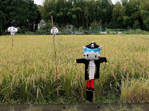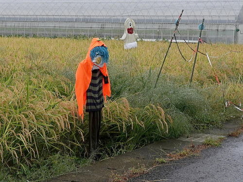 | 案山子[10月10日] 刈り取りが終わるまで僕らが守っています。 | 案山子[10月10日] 鬼太郎、オバQ? | |