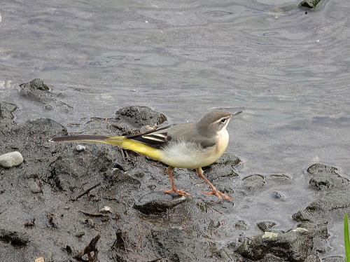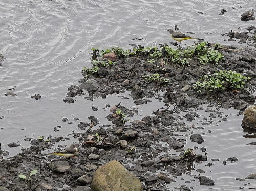 | キセキレイ[10月9日] 昨日とは違う川に2羽いました。 | キセキレイ[10月9日] 忙しなく飛び回り、採餌したりしています。 | |