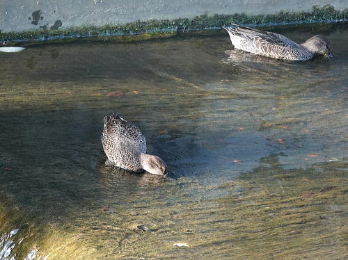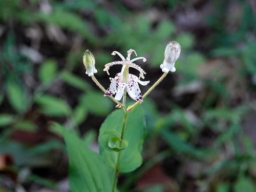 | コガモ[10月4日] 4羽いました。採餌に夢中でした。 | ヤマホトトギス[10月2日] 一株だけ、綺麗に咲いていました。 | |