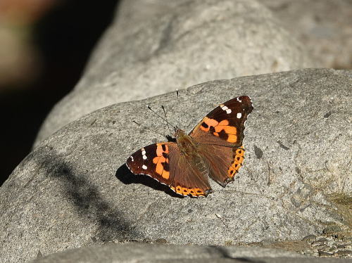 | エナガ[11月2日] 水を飲んだり、水浴びをしたり。 | アカタテハ[11月2日] 石の上は暖かいのでしょうか。 | |