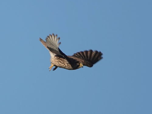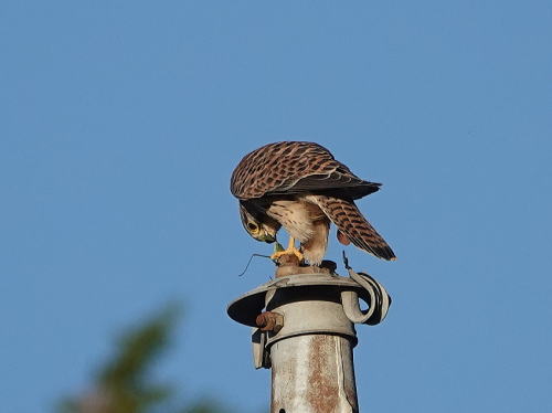 | チョウゲンボウ[11月21日] あっという間にカマキリのような虫を獲ってきて食べ始めました。 | チョウゲンボウ[11月21日] 少し離れた所に♂もいました。 | |