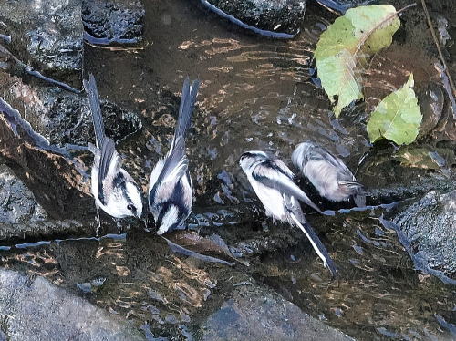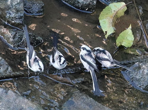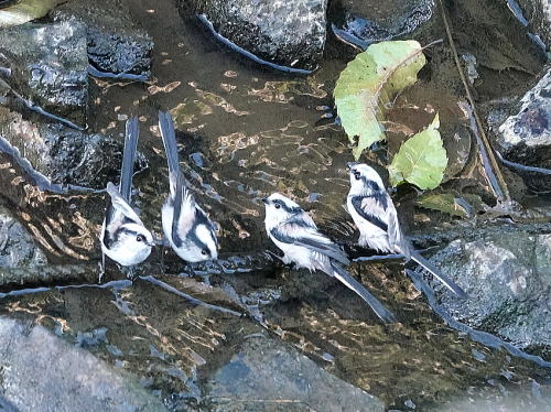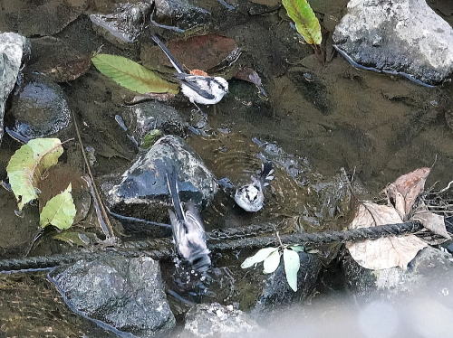 | ジョウビタキ[11月2日] ストレッチをしたりして長い間止まっていました。 | エナガ[11月2日] 群れがやって来たと思ったら、用水路に下りて水浴びを始めました。 | |