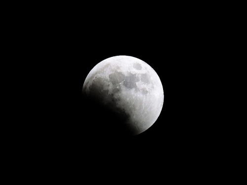 | 皆既月食[11月8日] 東の空に満月が煌々と輝いています。これから皆既月食が起こります。 | 皆既月食[11月8日] 18時9分から欠け始めた満月は三分の一くらい欠けて来ました。 | |