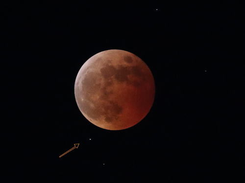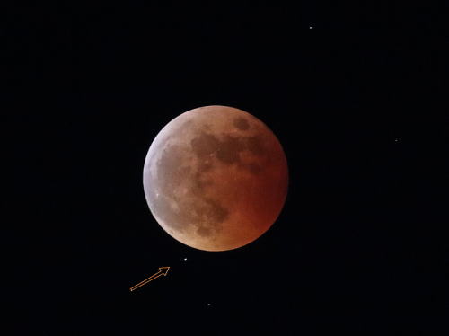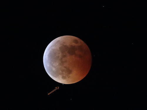 | 皆既月食、天王星食[11月8日] 月食と同時に442年ぶりという天王星食が見られます。矢印が天王星です。 | 皆既月食、天王星食[11月8日] 満月がだんだん近付いてきました。 | |