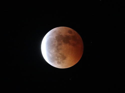 | 皆既月食、天王星食[11月8日] カメラで覗いていても天王星は見えません。撮ったのを見て確認です。 | 皆既月食、天王星食[11月8日] なんとか隠れる寸前が撮れました。 | |