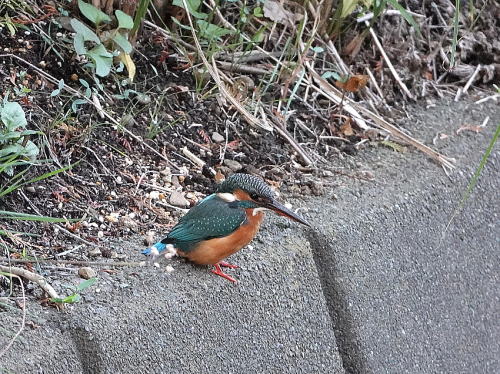 | イソシギ[11月10日] いつもの川の居心地が悪くなったのでしょう、こちらで見かけます。 | カワセミ[11月10日] 若鳥のようです。 | |