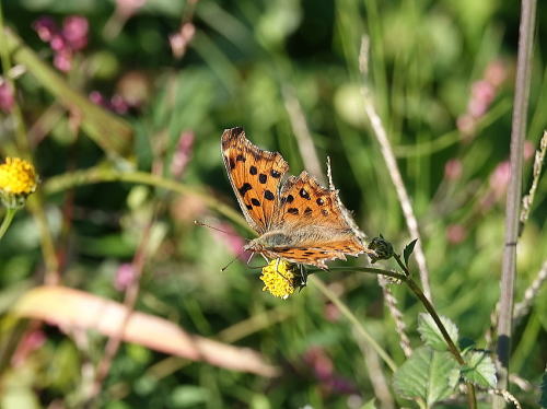| エナガ[11月2日] 群れがやって来ましたが、あれよあれよという間に行ってしまいました。 | キタテハ[11月2日] 田んぼの畦道で見かけました。 | |