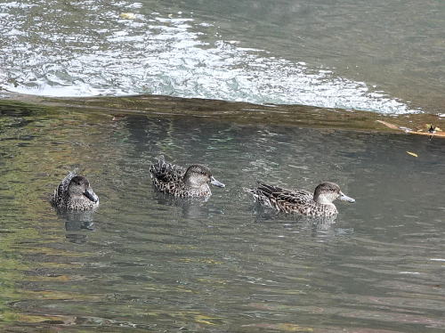 | ジョウビタキ[11月1日] 冬鳥がやって来ました。ヒッヒッとよく鳴いています。 | コガモ[11月1日] 3羽で採餌中を邪魔してしまいました。 | |