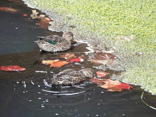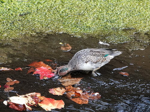 | コガモ[11月10日] ここには9羽いました。 | コガモ[11月10日] ♂羽に換羽中です。 | |