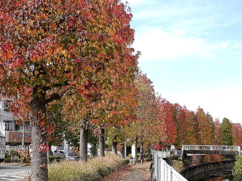 | ツグミ[11月17日] 2羽いました。 | 紅葉[11月17日] モミジバフウの街路樹です。 | |