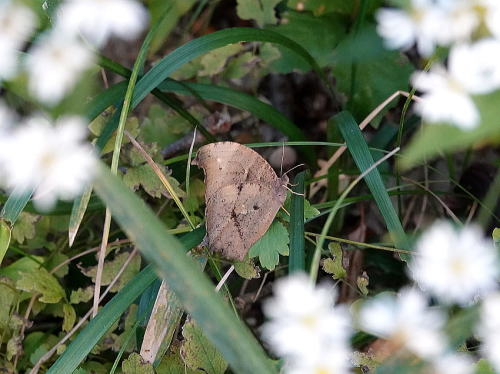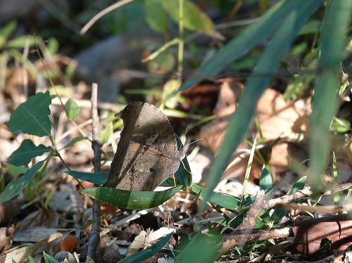 | アキノキリンソウ[11月5日] 1株だけ咲いていると教えて頂きました。遠くて小さいのをよく見つけられたものです。 | クロコノマチョウ[11月3日] 珍しく明るい所に止まりました。 | |