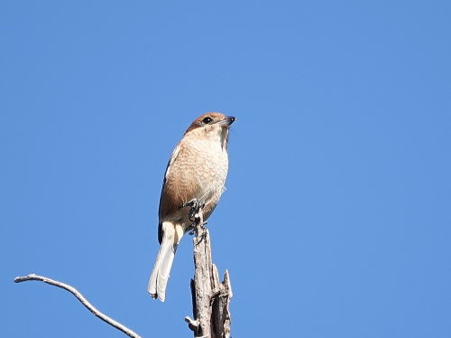 | リンドウ[10月31日] 咲き始めました。根元から刈られてしまったので短いです。 | モズ[10月31日] 未だ高鳴きしていました。 |