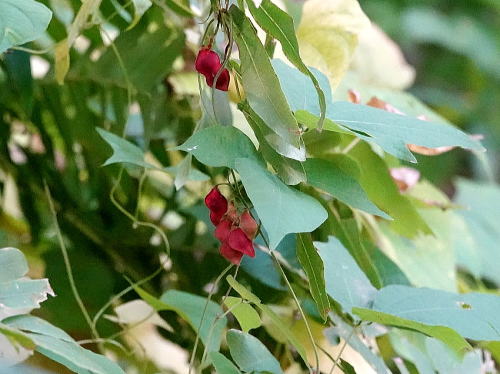 | ノササゲ[11月3日] 色づいてやっと見つけられました。 | トキリマメ[11月3日] 莢が弾けるのが楽しみです。 | |