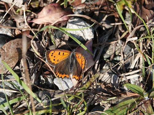 | コガモ[12月4日] 公園の小さな池では♀が賑やかでした。 | ベニシジミ[12月4日] 止まったままでした。 | |