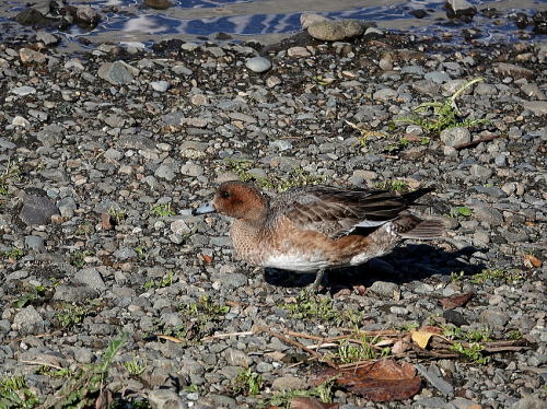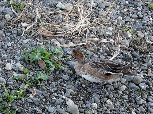 | アオサギ[12月10日] 何を見下ろしているのでしょう。 | ヒドリガモ[12月7日] 河原にいました。換羽中です。 | |